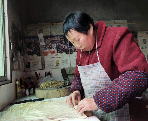张阿姨是地地道道的房县人,今年是她炸年货的第三十个年头。今天一大早,伴随着屋顶飘出袅袅炊烟,她和家里的老人们开始忙活起来,剁馅、打鸡蛋、生火、烧油,忙的不亦乐乎。