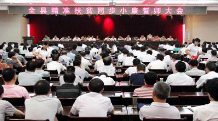8 月 17 日,精准扶贫同步小康誓师大会隆重召开。县委书记柯大成、县长蔡贤忠在会上强调,全县上下要坚定“三年整体脱贫、五年同步小康”的一个目标,实施“大产业、大搬迁、大保障”三大战略,振奋精神,提振信心,坚决打嬴脱贫攻坚、同步小康决胜战,为与全国、全省同步小康做出更大贡献。