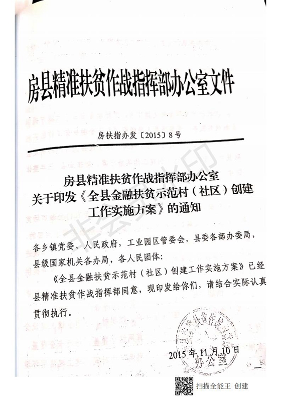 房县精准扶贫作战指挥部办公室关于印发《全县金融扶贫示范村(社区)创建工作实施方案》的通知-今日房县网-- 房县门户