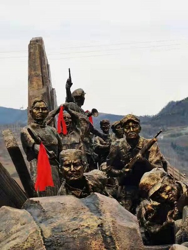 十堰日报记者 李平 报道 :面向堵河,“强渡三道绳”群雕矗立十(十堰)竹(竹山)路旁的房县姚坪乡黄峪口,点缀着乡村美景,彰显着当地人民的不屈意志。1月25日,记者来到三道绳烈士纪念广场,瞻仰“强渡三道绳”群雕,缅怀先烈。