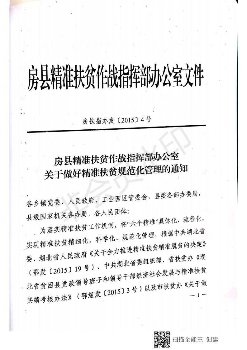房县精准扶贫作战指挥部办公室关于做好精准扶贫规范化管理的通知