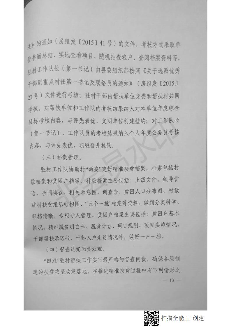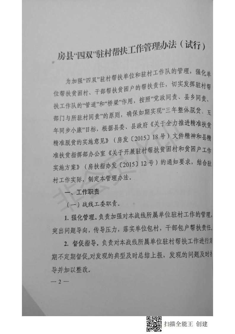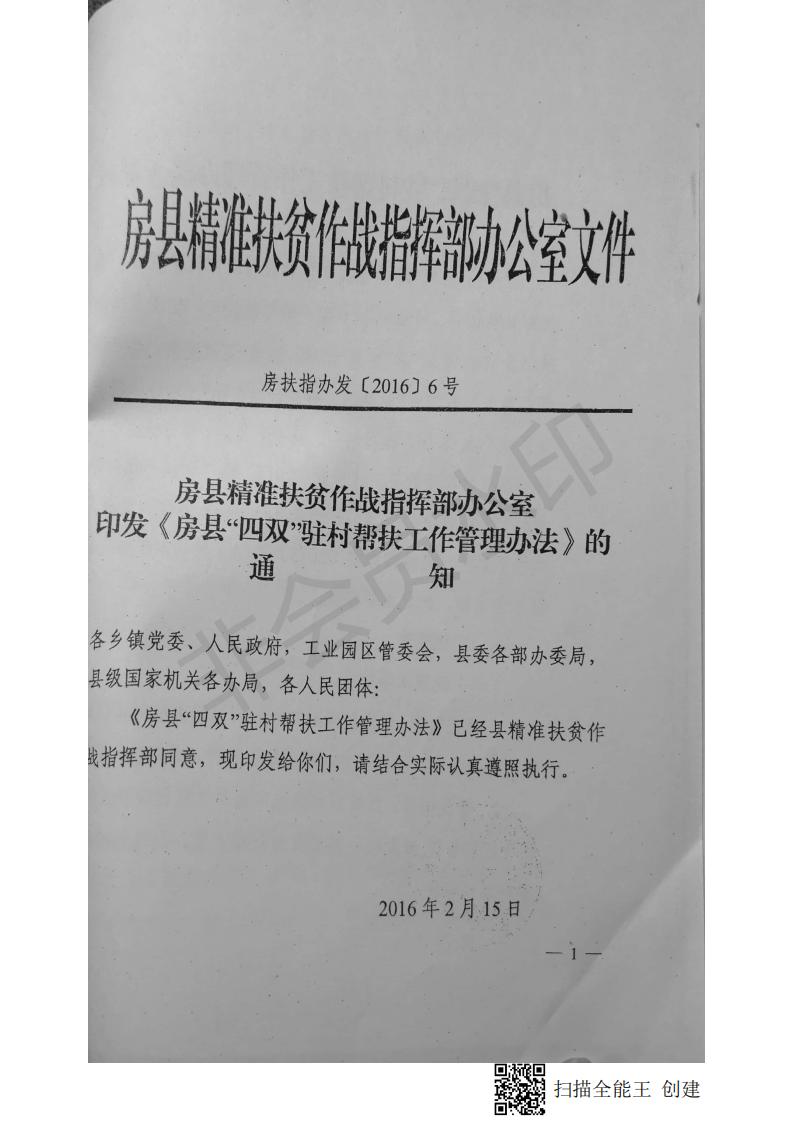 房县精准扶贫作战指挥部办公室印发《房县“四双”驻村帮扶工作管理办法》的通知