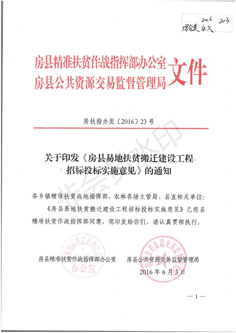 关于印发《房县易地扶贫搬迁建设工程招标投标实施意见》的通知-今日房县网-- 房县门户