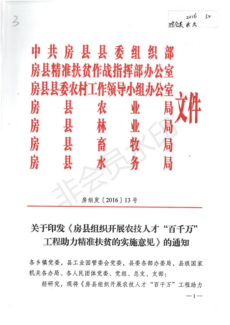 关于印发《房县组织开展农技人才“百千万”工程助力精准扶贫的实施意见》的通知-今日房县网-- 房县门户