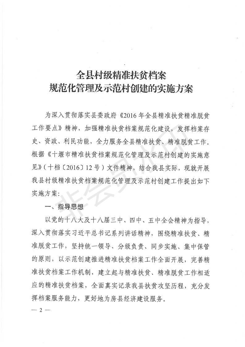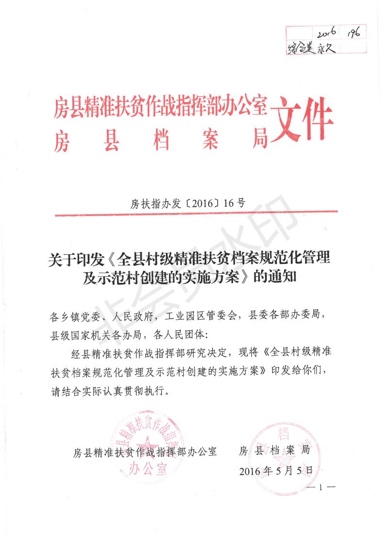 关于印发《全县村级精准扶贫档案规范化管理及示范村创建的实施方案》的通知-今日房县网-- 房县门户