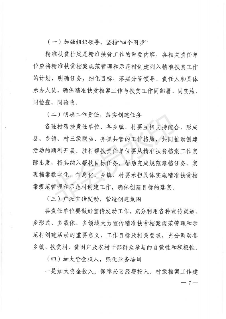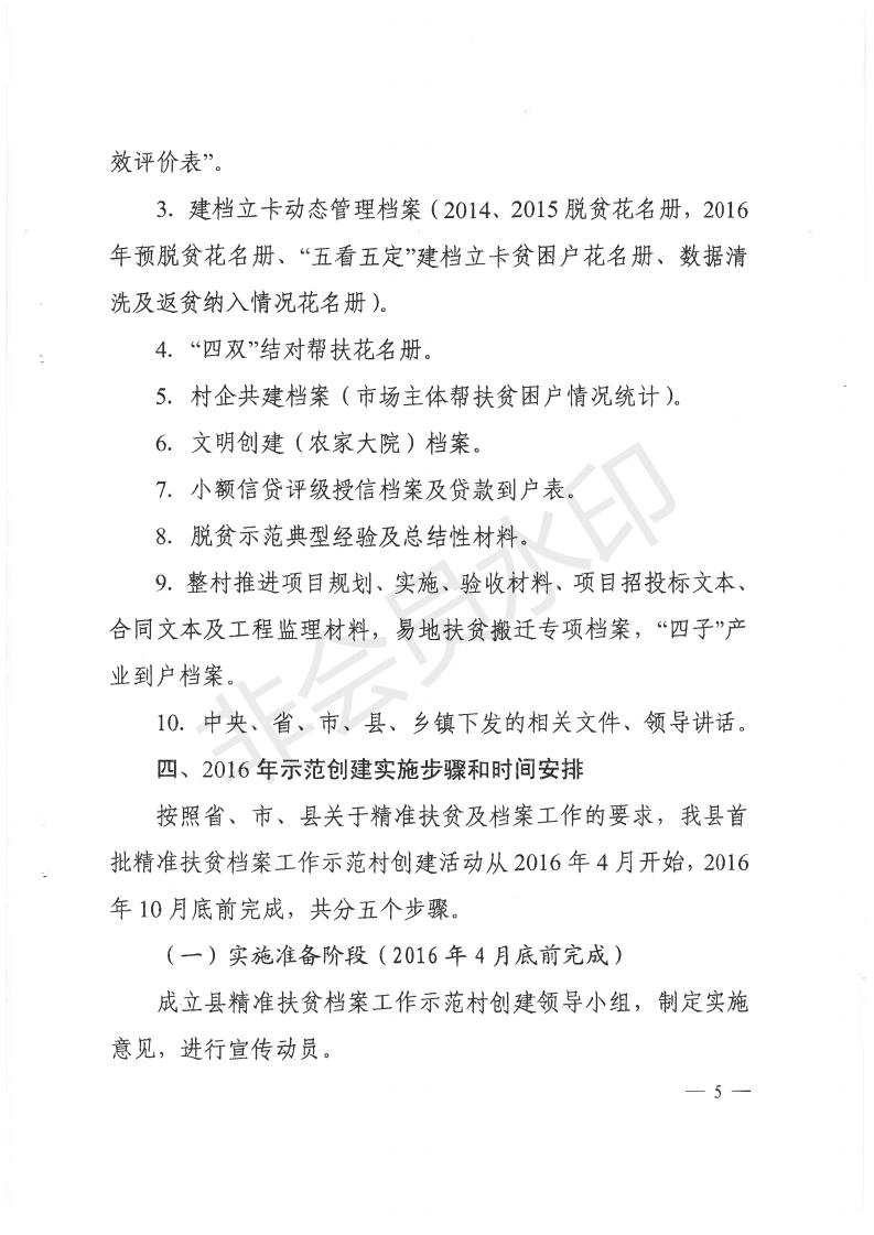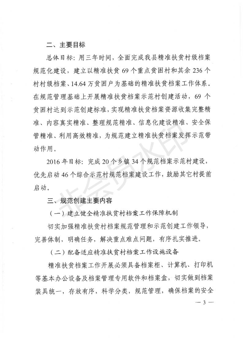 关于印发《全县村级精准扶贫档案规范化管理及示范村创建的实施方案》的通知