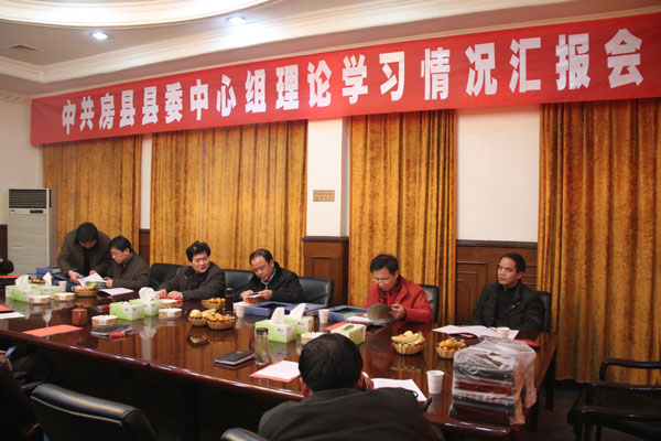 省委考评组希望县委中心组继续发扬主要领导带头学习的好作风,进一步加强理论学习制度建设,加强调查研究,做到学习方法上要创新、服务形式上要创新,学习理论上要创新,为建设“实力房县、生态房县、和谐房县、幸福房县”而努力奋斗。