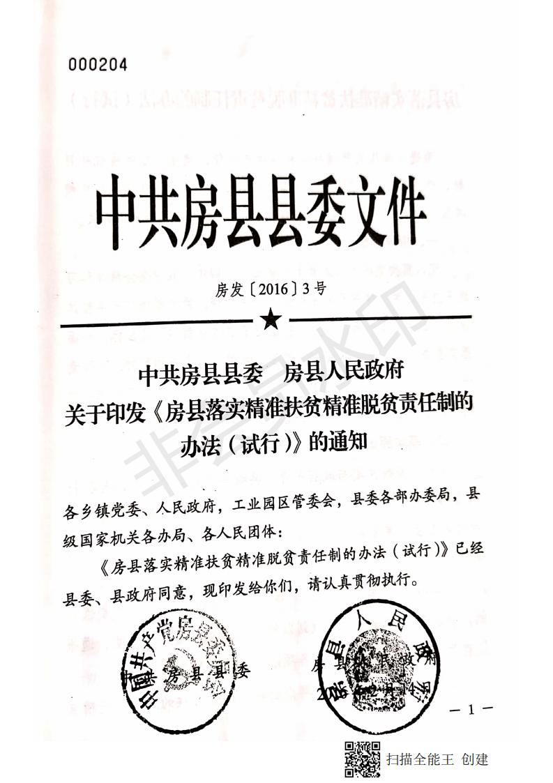 中共房县县委 房县人民政府关于印发《房县落实精准扶贫精准脱贫责任制的办法(试行)》的通知