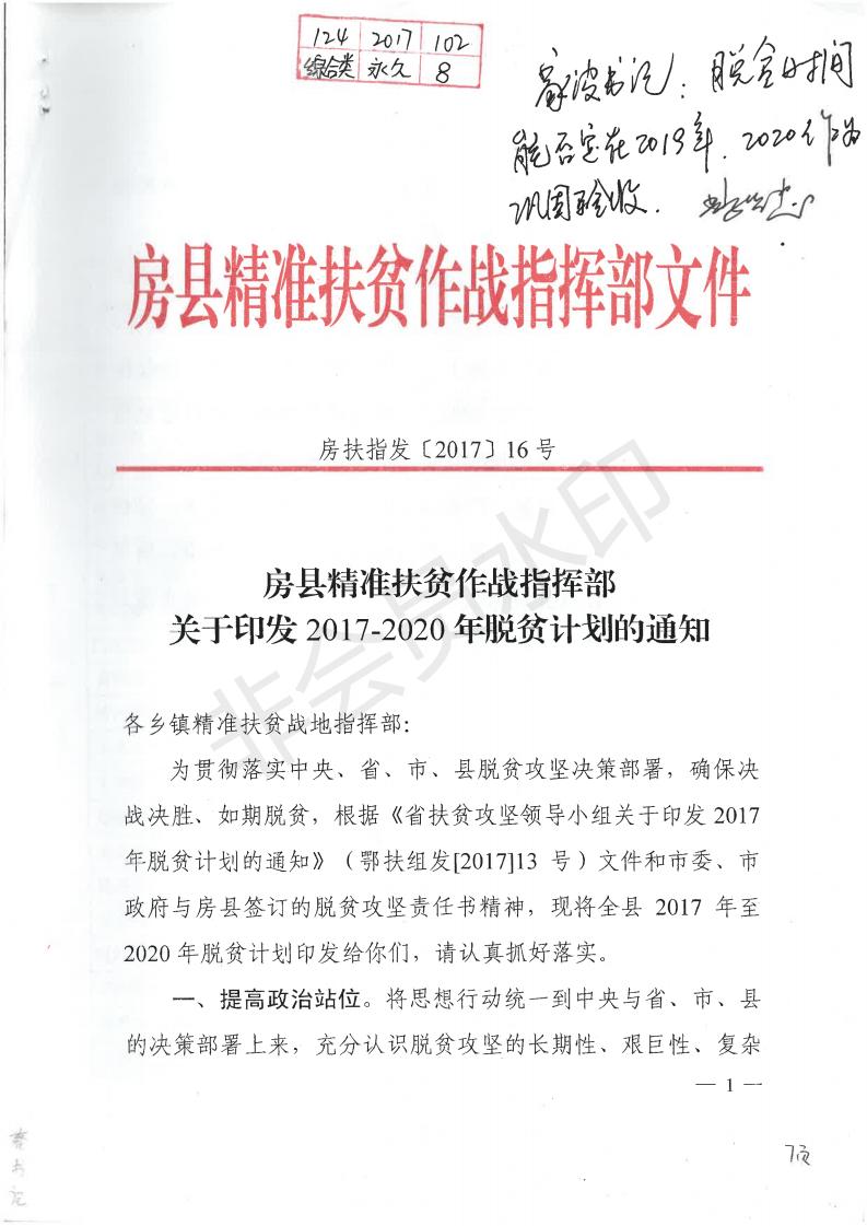 关于印发2017-2020年脱贫计划的通知-今日房县网-- 房县门户