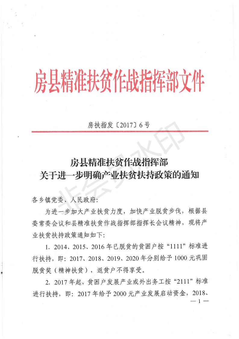 房县精准扶贫作战指挥部关于进一步明确产业扶贫扶持政策的通知-今日房县网-- 房县门户