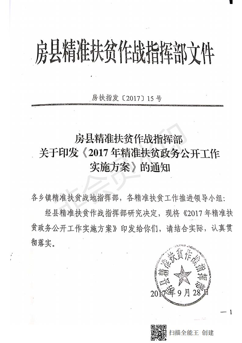 房县精准扶贫作战指挥部关于印发《2017年精准扶贫政务公开工作实施方案》的通知-今日房县网-- 房县门户