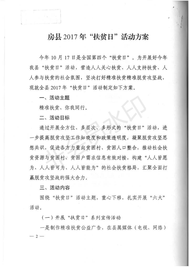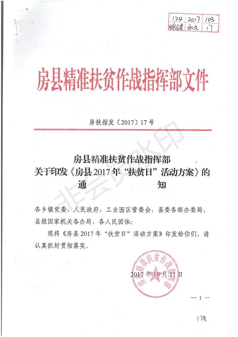 房县精准扶贫作战指挥部关于印发《房县2017年“扶贫日”活动方案》的通知