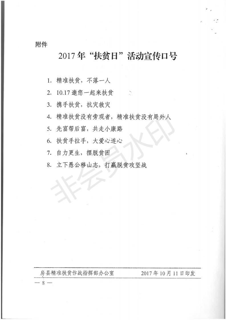 房县精准扶贫作战指挥部关于印发《房县2017年“扶贫日”活动方案》的通知-今日房县网-- 房县门户