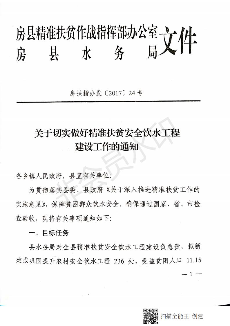 关于切实做好精准扶贫安全饮水工程建设工作的通知-今日房县网-- 房县门户