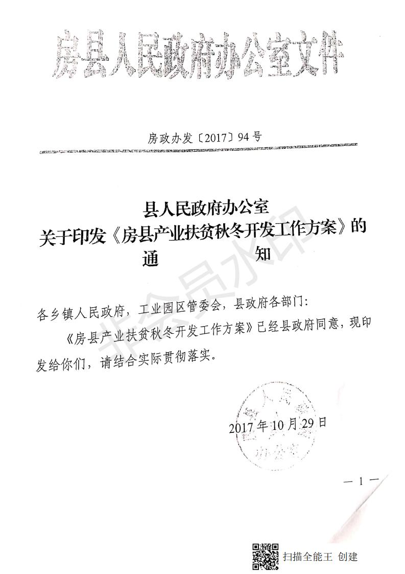 县人民政府办公室关于印发《房县产业扶贫秋冬开发工作方案》的通知-今日房县网-- 房县门户