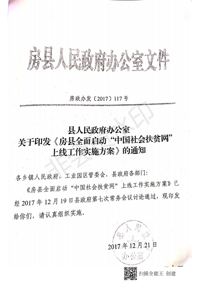 县人民政府办公室关于印发《房县全面启动“中国社会扶贫网”上线工作实施方案》的通知-今日房县网-- 房县门户