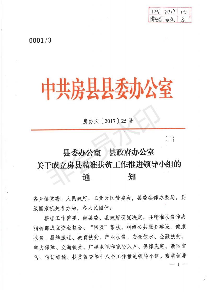 县委办公室 县政府办公室关于成立房县精准扶贫工作推进领导小组的通知