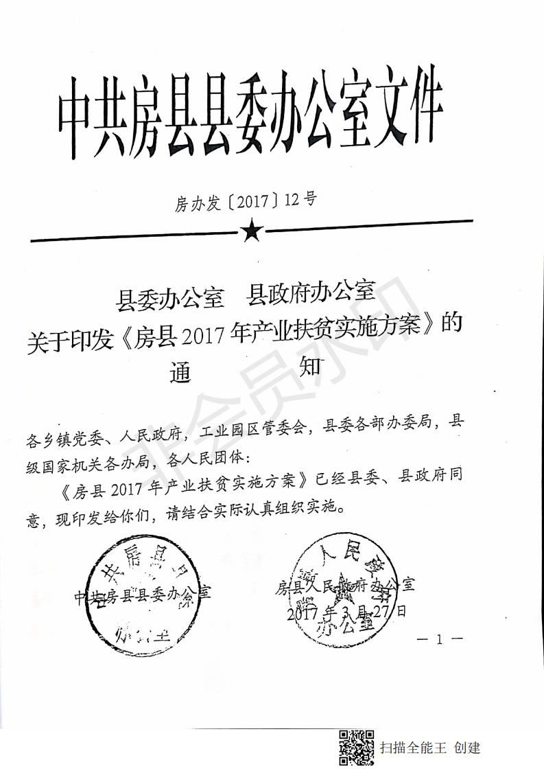 县委办公室 县政府办公室关于印发《房县2017年产业扶贫实施方案》的通知