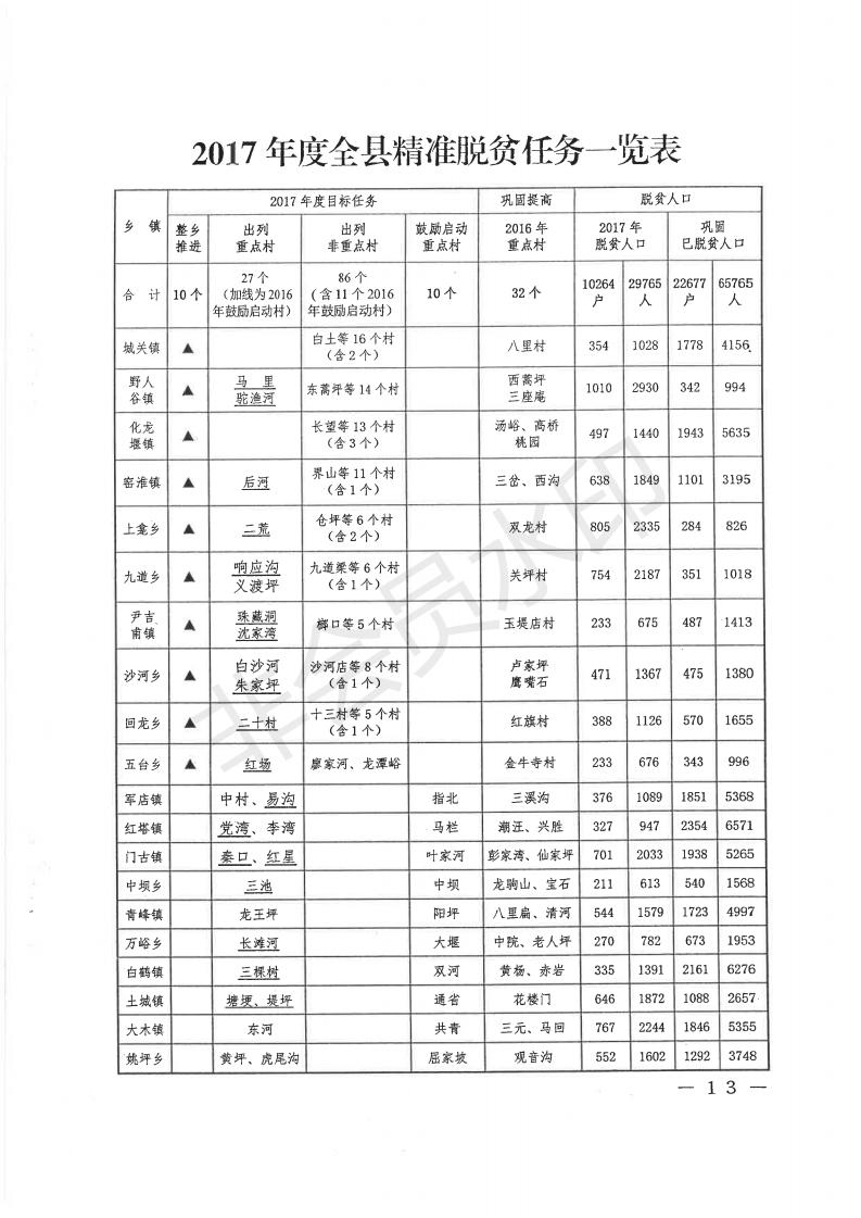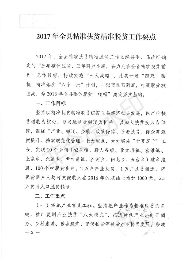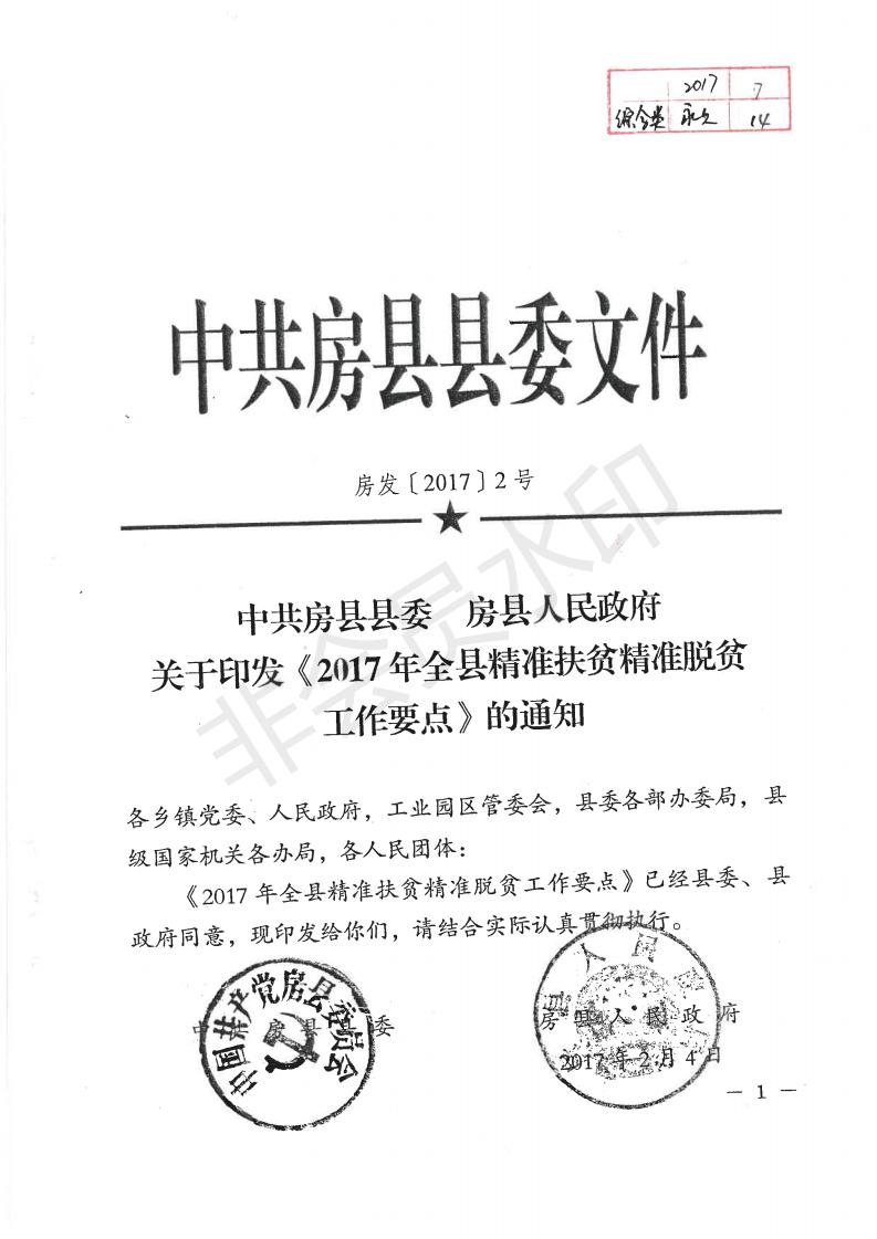 中共房县县委 房县人民政府关于印发《2017年全县精准扶贫精准脱贫工作要点》的通知