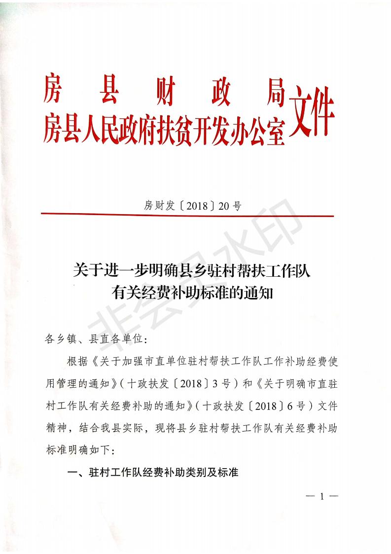 关于进一步明确县乡驻村帮扶工作队有关经费补助标准的通知-今日房县网-- 房县门户