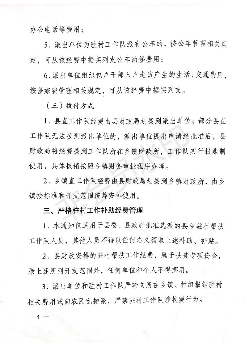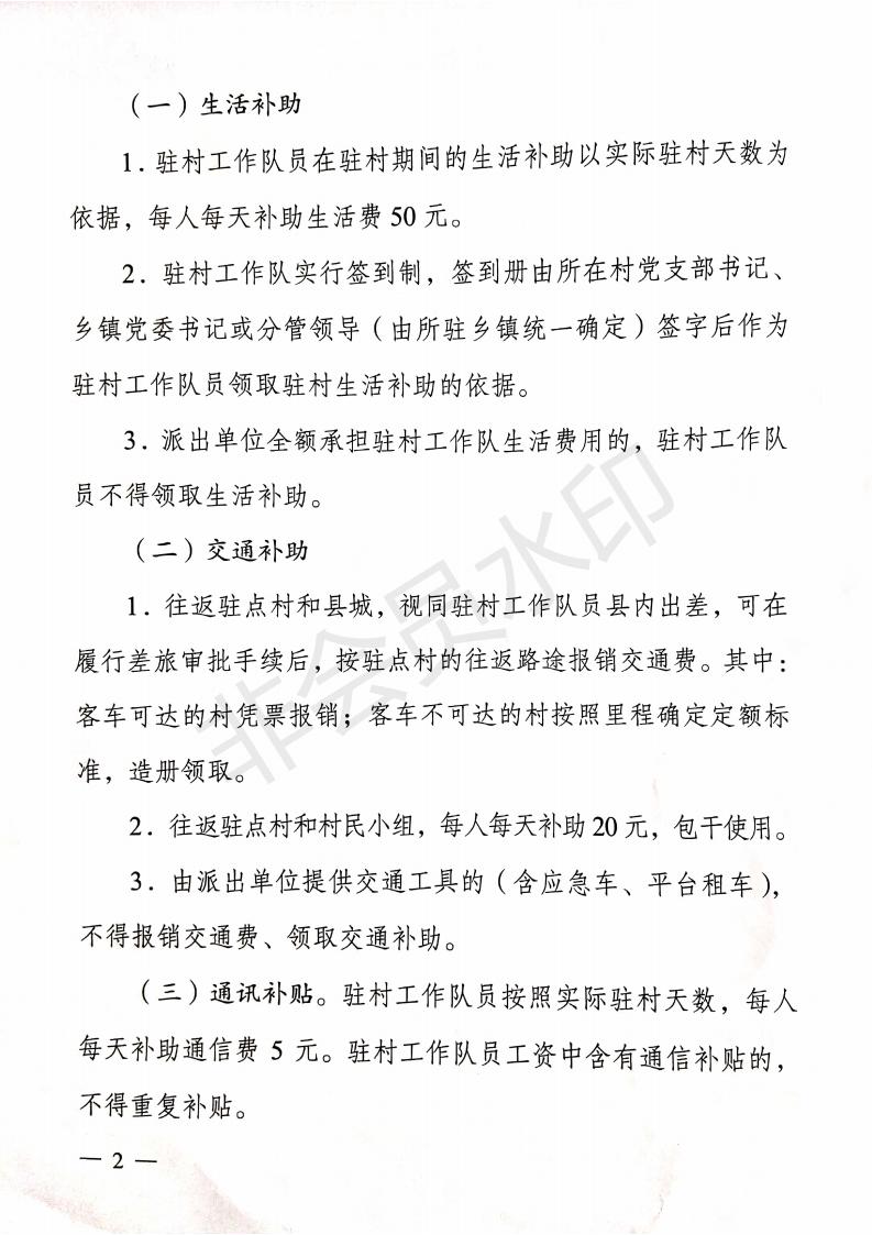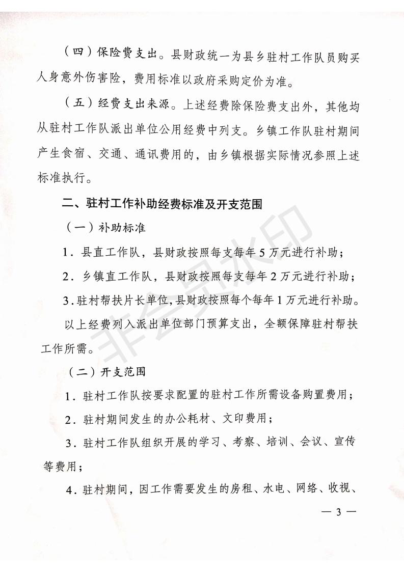 关于进一步明确县乡驻村帮扶工作队有关经费补助标准的通知