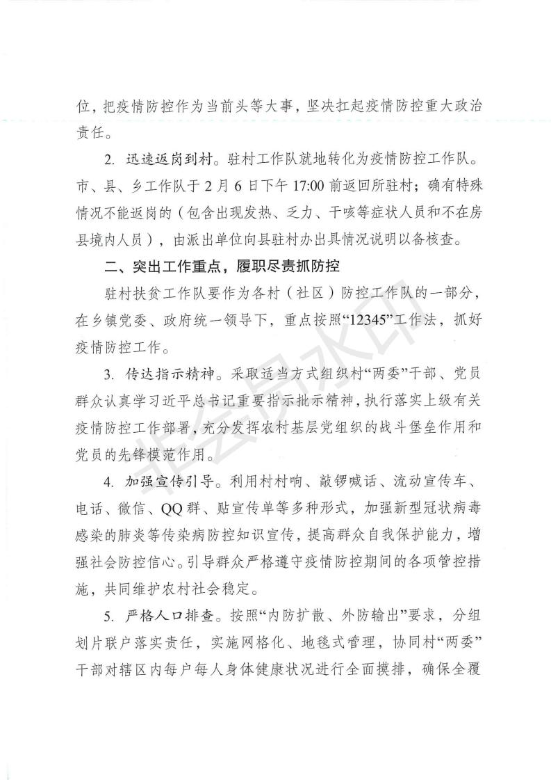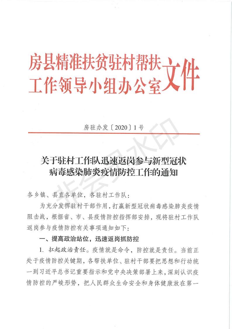 关于驻村工作队返岗参与新型冠状病毒感染肺炎疫情防控的通知