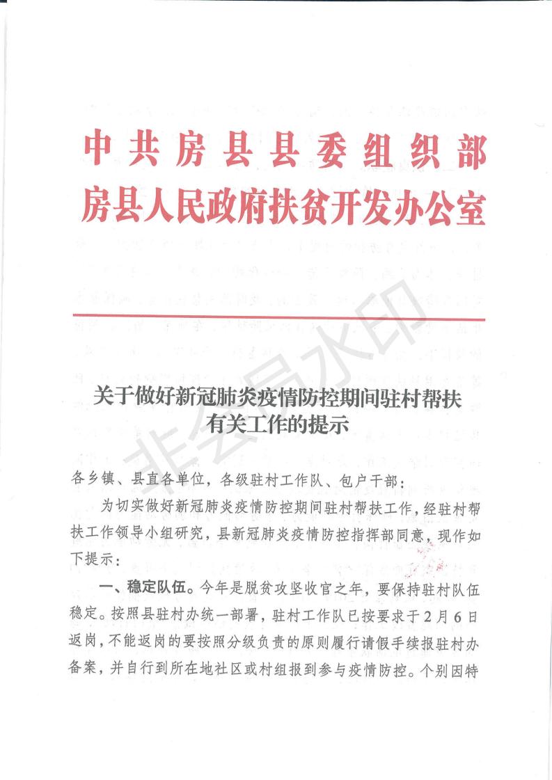 关于做好新冠肺炎疫情防控期间驻村帮扶有关工作的提示,上报驻村办 叶勇