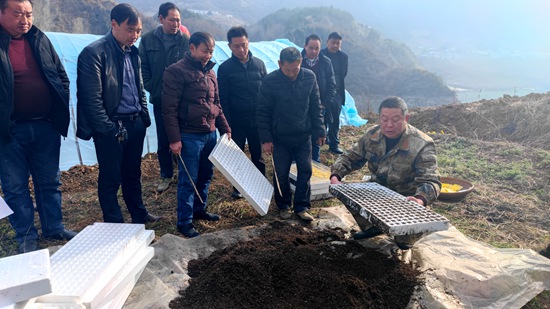 2月13日,九道乡在义渡坪村集中召开全乡烟叶育苗播种现场会,推广新技术,传授种植管理经验。现场会上,九道烟站技术人员从烟叶育苗场地选择、卫生清理、大棚消毒、浮盘消毒清洗、基质过筛、水分调节、装盘播种、卷膜排湿、浮盘入池、苗床施肥、温湿度管理等育苗全流程关键环节技术要领,指导参会人员现场操作,掌握要点。九道乡政府还对就烟叶种植面积落实、物资调运、产业扶持政策等方面进行了安排和讲解。