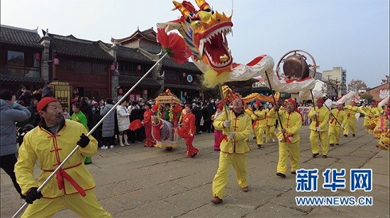 湖北房县“火龙闹元宵”展示非遗风采。新华网发