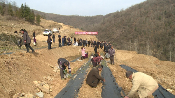 在门古寺镇秦口村和石垭村茶园种植基地,干部群众扛起锄头、拿起铲子,开始在地里忙活。覆膜、起隆、递苗、挖窝、盖土、浇水,现场干得热火朝天。从动作生硬到熟练,在 “茶农”们劳动中,地里出现了一排排整齐的茶苗。村两委和种植大户在现场学习新建茶园的管护技术标准。