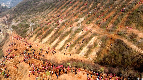 县委书记纪道清,县委副书记、县长谢晓鸣,县人大常委会主任高明哲,县政协主席董诠闻带领县四家班子领导和党群战线、政府战线、政法战线、经贸战线、宣教战线、农业战线、发改战线等7个战线干部职工约1500人,来到北城工业园区的荒山上,开展义务植树活动。在植树现场,大家一同挥铲、扶苗、踩实、浇水,高质量完成植树的每一道工序。整个植树现场一派热火朝天的劳动景象,大家干劲十足,用双手播洒绿色、绿化美化家乡。当天共绿化荒山面积150亩,植树16500株。