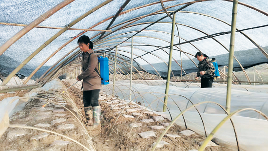当前是羊肚菌田管的关键时期,在房县军店镇中村村羊肚菌示范种植基地里,村民忙着给大棚内破土而出的羊肚菌“补水”,为即将到来的丰产丰收作准备。今年,军店镇规划建设千亩羊肚菌基地,带动群众增收致富。