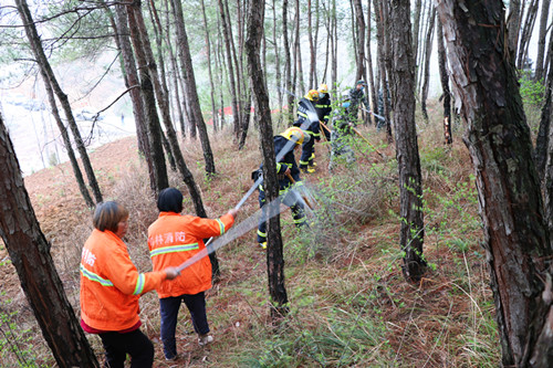 据悉,本次演练以模拟桃园社区某山场发生森林火灾为背景,对火灾扑救中的火灾报警与应急响应、灭火力量集结、展开灭火行动和清理移交火场进行了连贯演示。演练现场,县消防大队专业人士对扑火器具的使用方法、扑火安全常识、扑火安全与避险、自我保护的方法等生动详细的讲解,并做好安全撤离、余火清理、现场留守等后续工作,演练达到预期效果。
