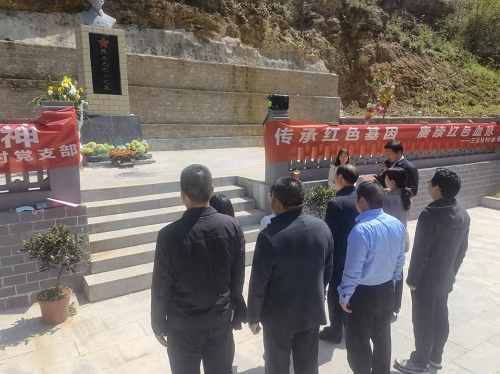 在活动中,全体党员干部佩戴党徽、整齐列队,重温入党誓词,并向乔三元烈士敬献花篮、致敬默哀。现场烈士后人乔玉泉解说了烈士乔三元生前参加革命,为国捐躯的光荣事迹。