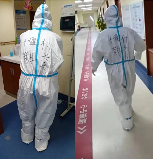 奥密克戎变异株传染力较强,给院感工作带来很大的压力,大多数轻症的患者在方舱医院。目前病房收治的患者,大多数有基础疾病,大部分是80-90岁的高龄老人,护理工作主要承担病人们生活护理。隔离病房都是没有陪护的,这里的护理工作很辛苦,部分患者需要输液、抽血、吸痰、翻身,以及患者的吃喝拉撒,房间消杀,特别是垃圾的转运工作量是巨大的。每次脱下防护服后,贴身衣物都是湿透了。但是面对这样的困难,房县人民医院的医护人员都很勇敢,坦然的把困难克服,在困难中成长。我们的队员舒松在4月8号的视频会中第一个得到点名表扬,我们全体队员都非常自豪。