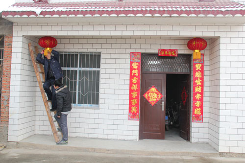 “千门万户瞳瞳日,总把新桃换旧符”。在红塔镇朱湾村移民小区,每户人家的大门前都是忙碌的身影,大家在齐心协力把大门清洗干净,贴上大红的春联、灯笼等,期待着度过和和睦睦的除夕之夜,迎来甜甜美美的新春佳节。