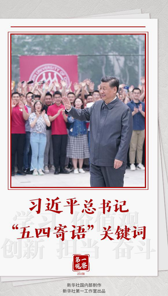 “五四运动以来的100年,是中国青年一代又一代接续奋斗、凯歌前行的100年,是中国青年用青春之我创造青春之中国、青春之民族的100年。”