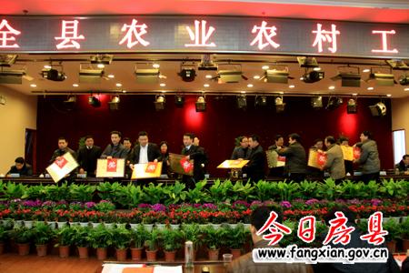 会议对在2011年农业农村工作涌现出来的城关镇党委政府等144个农业农村工作先进单位、付传强等133名农业农村工作先进个人进行了表彰,副县长高明哲与相关乡镇部门签订了2012年农业农村工作目标责任书。