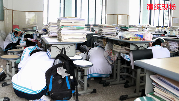 此次演练模拟突发强震,部分墙体出现裂缝,部分门窗变形,有大量尘土坠落为背景。随着地震警报响起,学生迅速躲在课桌下避险,借助书包、书本保护头部和身体。楼体晃动结束后,在老师和消防队员组织下,各班学生迅速疏散到操场躲避余震。最后集合清点人数,查找有无遗漏人员。