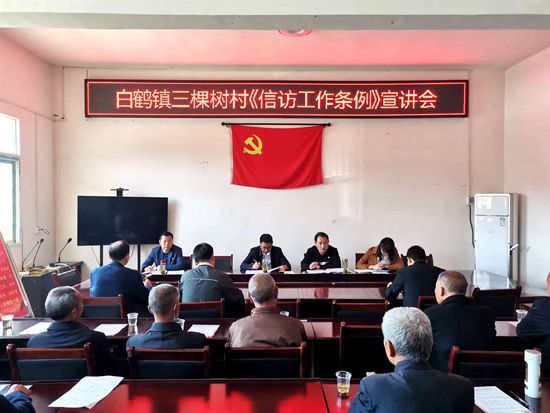 20号,深入白鹤镇三棵树村举办专题培训班,向基层党员群众宣传《信访工作条例》的八大亮点、新旧对比等方面,详细阐释了《信访工作条例》的重大意义、适用范围、职责要求、遵循原则;为基层群众准确把握、深入理解、学习贯彻《信访工作条例》做深入解读。