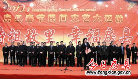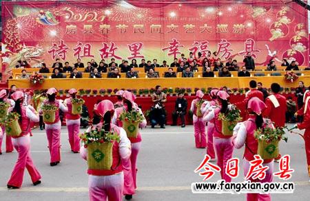 上午9时整,县委书记沈明云宣布:“诗祖故里·幸福房县”2012春节民间文艺大巡游活动开始!