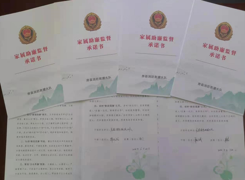 四是签订家庭助廉监督承诺书。组织全体党员干部及家属签订《家属廉政监督承诺书》,推进家风家教建设,激励指战员家属争当“廉内助”,构筑家庭“护廉网”,教育全体党员干部树立道德准绳,守住道德底线,传承良好家风,自觉做道德建设的宣传者、实践者和捍卫者。