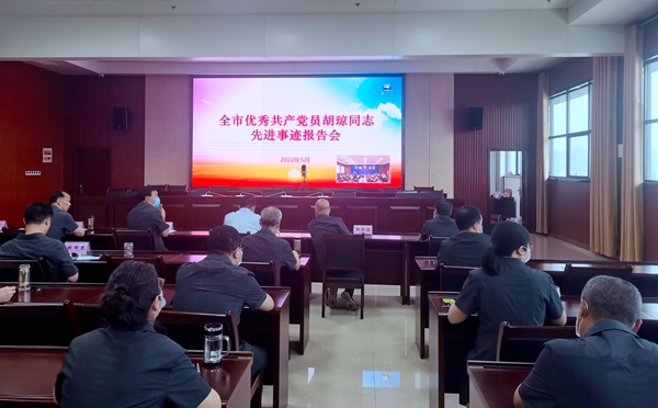 报告会上,十堰市中院执行局干警、房县法院执行局员额法官李飞、房县法院刑庭员额法官杨小英以自己的亲身经历,做了“活着他是一面旗帜,离去他是一座丰碑”“夜空中最亮的星”的报告,分别讲述了原房县人民法院党组书记、院长胡琼同志生前工作和生活事迹。他们通过生动的讲述和一张张照片还原了在胡琼同志在工作中坚守初心使命、敢于担当作为的先进事迹。胡琼同志的先进事迹,深深地打动了在场的党员干部。