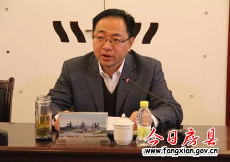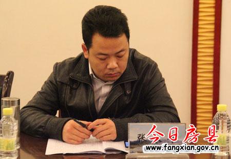 图为县委常委、县委办公室主任张永平参加汇报会