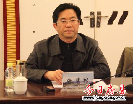 图为县委副书记张慧彬参加汇报会