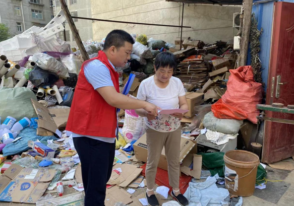 活动中,志愿者挨家挨户上门向居民发放创建全国文明城市宣传资料,倡导文明行为,引导居民将房屋周围的卫生打扫好,对堆放的杂物进行及时清理,提升居民环保意识。同时,志愿者们手持清洁工具,对社区沿街路面的垃圾、落叶,绿化带内的杂物,居民楼周边的环境卫生死角等进行了大清理,并铲除沿线“牛皮癣”,确保清理一处,靓丽一处。