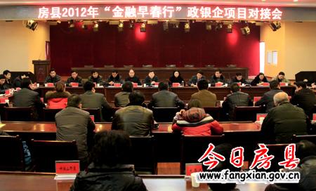 今日房县网讯 记者 吴宏强 报道: 16日,我县召开2012年“金融早春行”政银企项目对接会,7家金融机构为县内15家企业签订了17.4亿元的信贷战略支持协议,此举将有力的推动我县重点企业发展和项目建设,全力拉动县域经济快速增长。县领导林华、李相明出席对接会,县内60余家企业及部分重点项目负责人参加对接会。