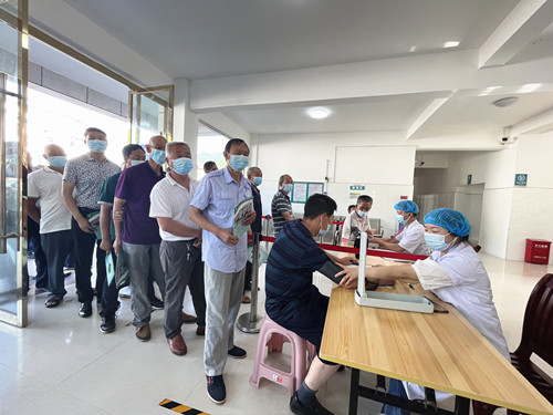 上午8时,土城镇卫生院前便排起了长长的队伍,信息登记、维护秩序、测血压、采血、心电图、B超等一系列检查有条不紊地进行,每迎来一名体检对象,医生们都耐心细致的和体检人员进行交流,详细询问病史、叮嘱注意事项及普及有关优惠政策,并在体检结束后为他们送上鸡蛋、牛奶以及纪念品,大家纷纷表达了对政府和医院的感谢。