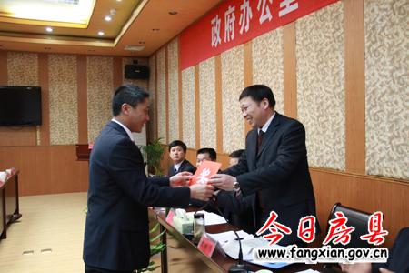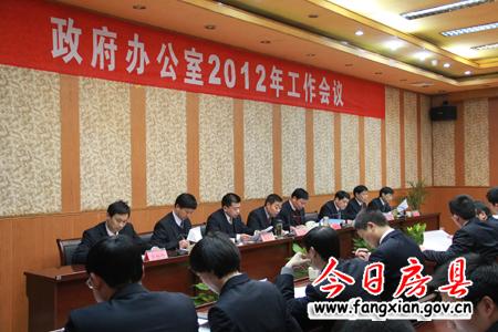 今日房县网讯 实习生刘臣 报道: 17日,县政府办公室工作会议在电信局会议室召开,会议传达贯彻县委、县政府年初相关会议精神,总结县政府办公室2011年工作,通报和表彰了2011年度部分先进工作者,安排部署2012年政府办公室主要工作。