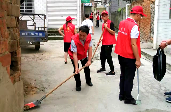 场景一:7月1日上午该局全体党员干部瞻仰完雷天明纪念馆后,于上午10:00来到包联社区泉水社区宣传创文、调研创文、文明劝导、清扫垃圾、整理乱堆乱放。刚刚温习了入党誓词的党员干部们怀着庄严神圣的心情工作,除了比以前更加认真外,还自发助人为乐,遇见劳作的群众,主动热情施以援手。群众感激地说:“你们不只是帮我们清扫垃圾,还帮我们推车,真是太好了!”